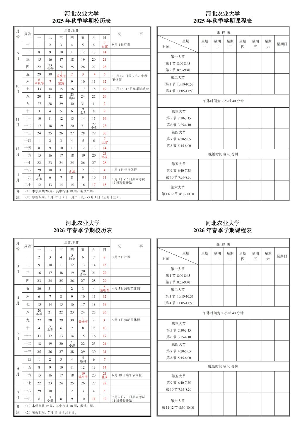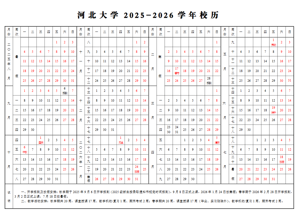 小编整理了保定多所高校2026年寒假放假时间及校历关键信息,
