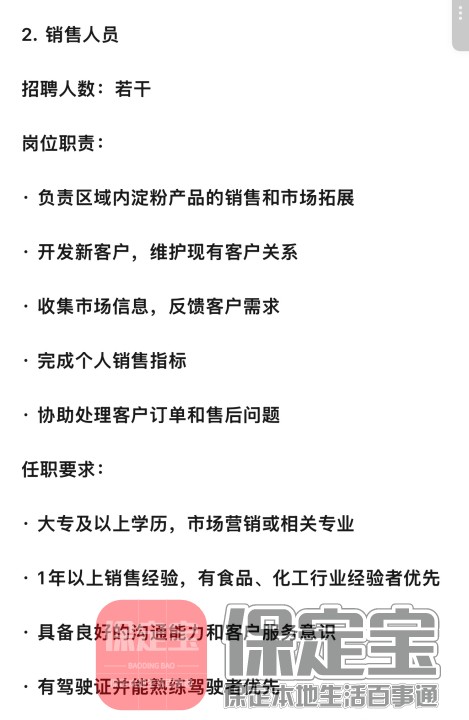 河北瑞熠天淀粉制造有限公司招聘信息如下: